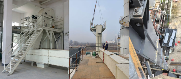 陜西客戶的復(fù)合肥廠原有生產(chǎn)線采用傳統(tǒng)螺旋輸送機(jī),存在提升高度不足、潮濕物料易殘留腐蝕、多設(shè)備銜接不暢等問題,為適配新生產(chǎn)線,定制了3臺(tái)板鏈?zhǔn)蕉肥教嵘龣C(jī),解決40米高落差輸送及復(fù)雜工況適配需求。針對(duì)復(fù)合肥含酸堿成分、部分物料含水量高的特性,設(shè)備主體選用304不銹鋼材質(zhì),料斗采用防粘附PP材質(zhì),有效杜絕銹蝕與物料結(jié)塊堵塞。設(shè)備同步適配混合機(jī)、造粒機(jī),實(shí)現(xiàn)全自動(dòng)化流程。