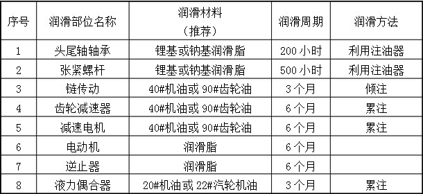 今日來,有許多客戶打電話購買部分斗式鏈條提升機(jī)的配件,并且有的客戶反映說是部件使用壽命較短。從各種原因分析來看,斗式提升機(jī)各部位的潤滑維護(hù)保養(yǎng)不到位可導(dǎo)致各部件快速損壞。對于斗式鏈條提升機(jī)操作者來說,可根據(jù)下圖制造其潤滑保護(hù)方案,延長設(shè)備的使用壽命。