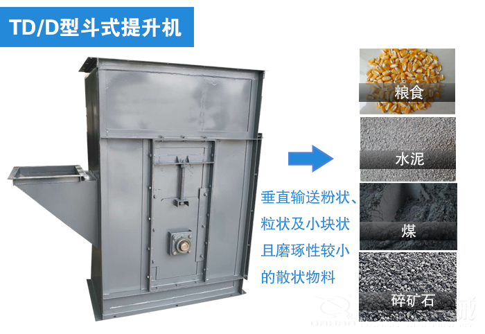 TD型斗式提升機是按照JB3926-85《垂直斗式提升機》標準設(shè)計生產(chǎn)的,該種類斗式提升機使用功率比較低,輸送物料范圍廣。與傳統(tǒng)D型斗式提升機相比,該種類的斗式提升機輸送效率高、料斗形式多。它主要是由運行部分(料斗與牽引膠帶)、帶有傳動滾筒的上部區(qū)段,帶有拉緊滾筒的下部區(qū)段,中間機殼,驅(qū)動裝置,逆止制動裝置等組成,大輸送量5.4-2m3/h,提升高度大40m。