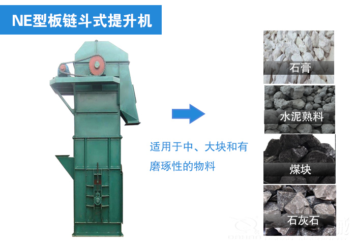 適用物料:該種類斗式提升機適用于中、大塊和有磨琢性的物料(如石灰石、水泥熟料、石膏、塊煤)的垂直輸送,物料溫度一般控制在250℃以下。