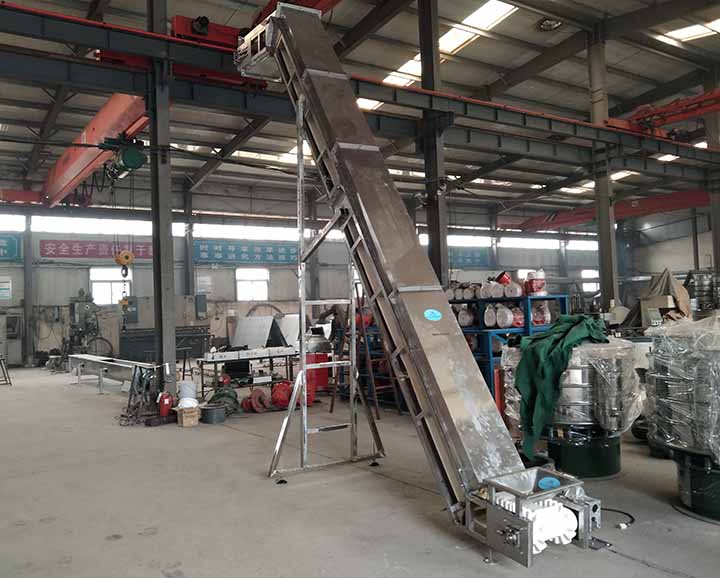 (5)由于不存在裝料時(shí)的挖掘阻力和運(yùn)行時(shí)物料的內(nèi)摩擦、外摩擦阻力,因此能耗小。例如,在魯南化肥廠使用的兩臺(tái)提升高度各為19.28m、輸送能力各為25t/h的輸送碎煤的垂直擋邊機(jī),其每臺(tái)的裝機(jī)功率僅4kW,而被它們所取代的四臺(tái)原有埋刮板輸送機(jī)的總裝機(jī)功率為44kW。