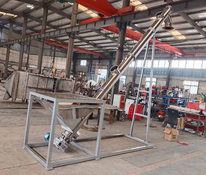 2、水平螺桿上料機(jī)可在其輸送線路上的任一點(diǎn)裝載卸載,對(duì)垂直螺桿上料機(jī)配置相對(duì)螺旋式取料裝置可具有優(yōu)良的取料性能。